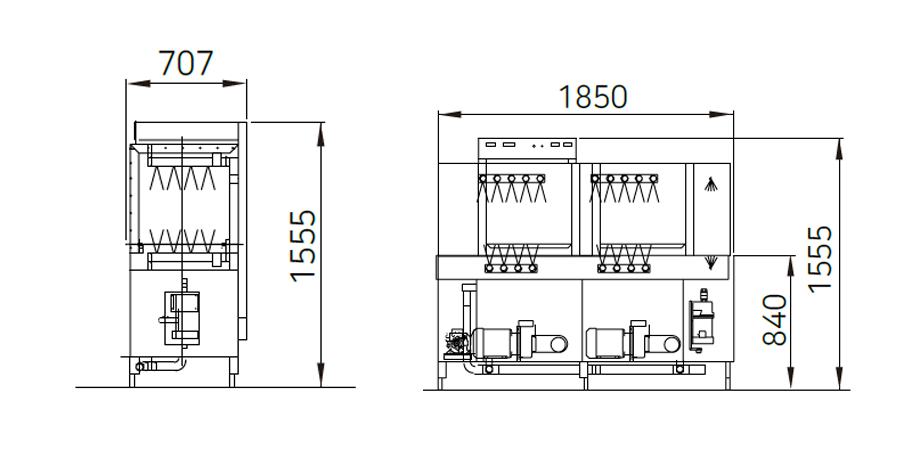 2탱크형 랙 컨베이어 타입으로, 더 많은 양의 세척물을